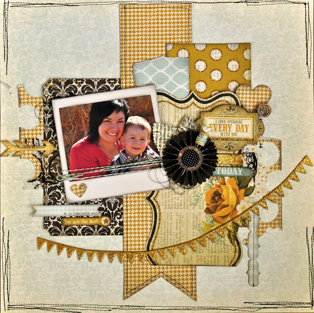 I used many different papers from MME, mostly from Lost and Found 2 and 3. As my sewing machine was up and running I added some stitching around the edges to frame the LO...it was definitely missing something when I didn't stitch around the edges - it felt incomplete and this added the subtle finishing touches.